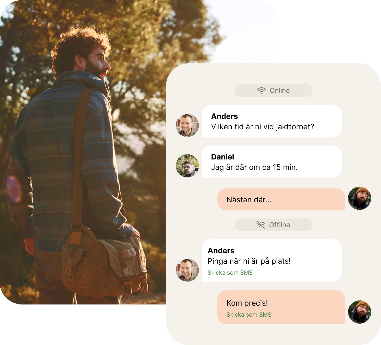 Whether in the forest or the field, Supertext keeps hunters connected. Share updates, organize trips, and coordinate safely, even without internet access.