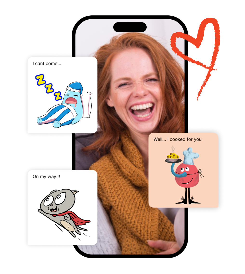 React with emojis, mention friends, and send custom stickers made by illustrators.